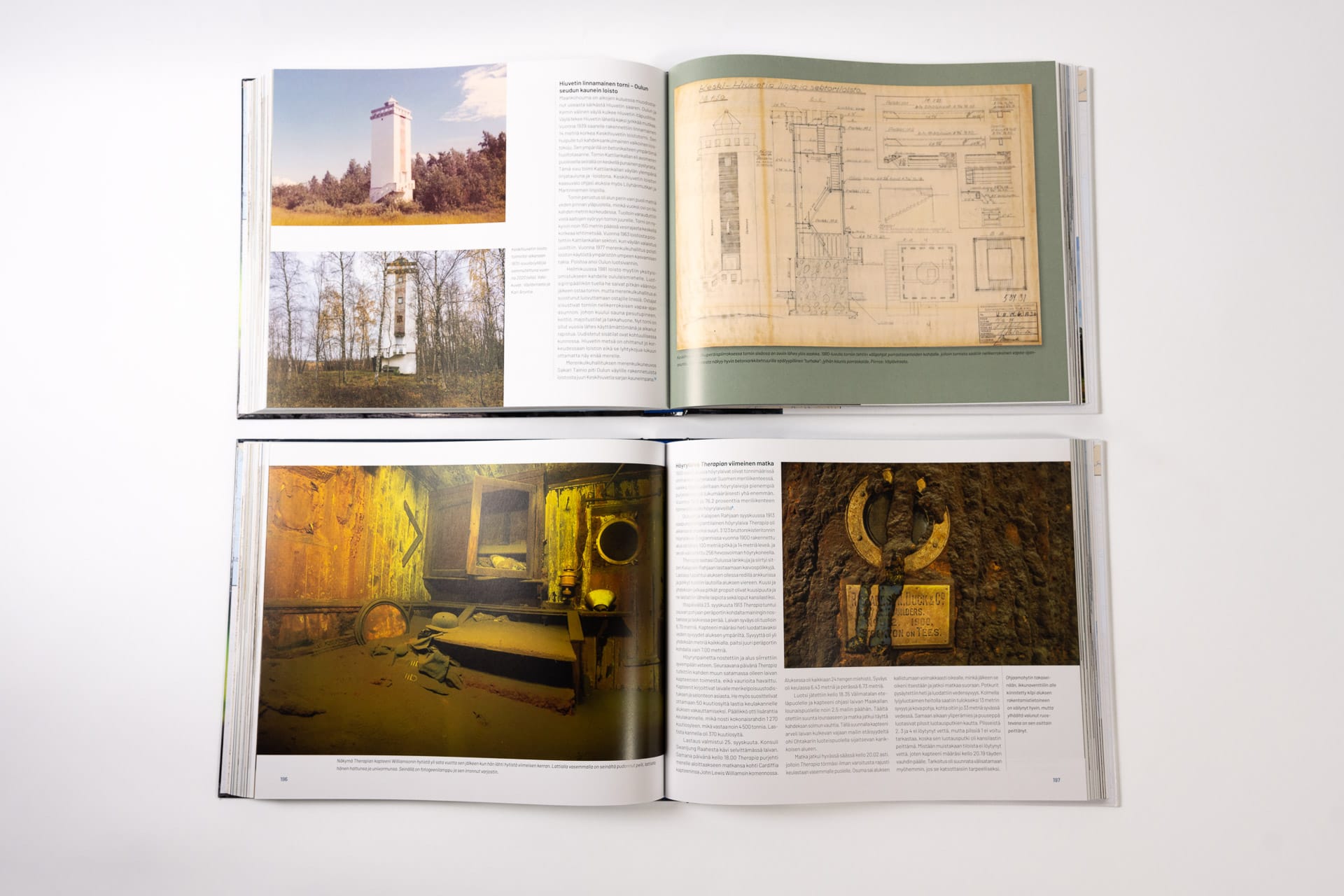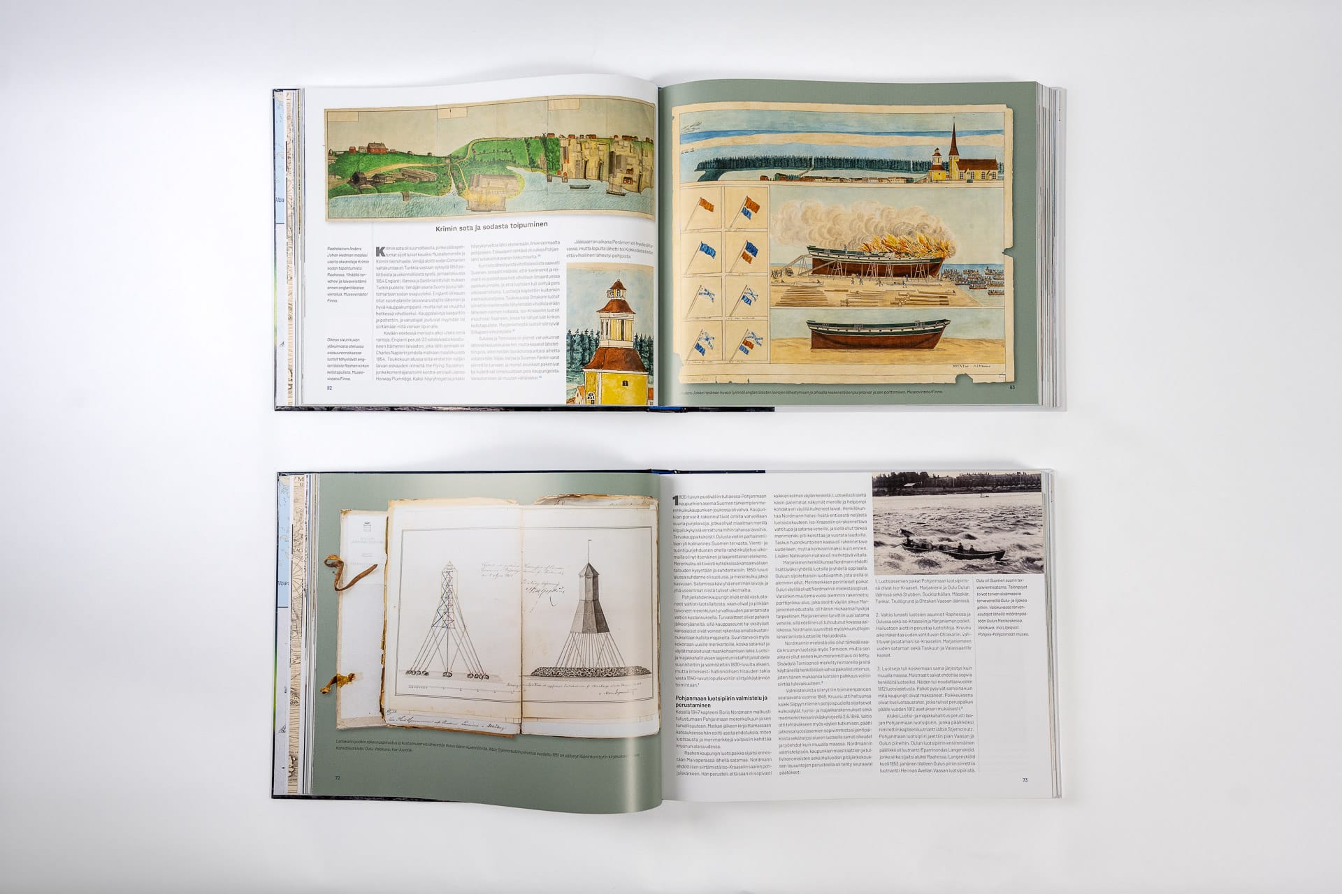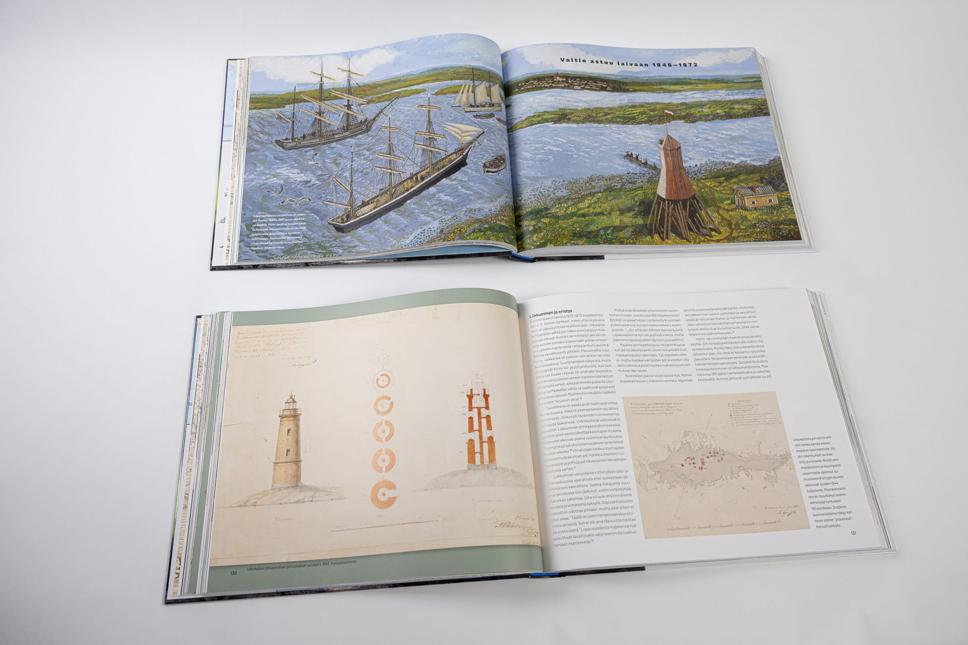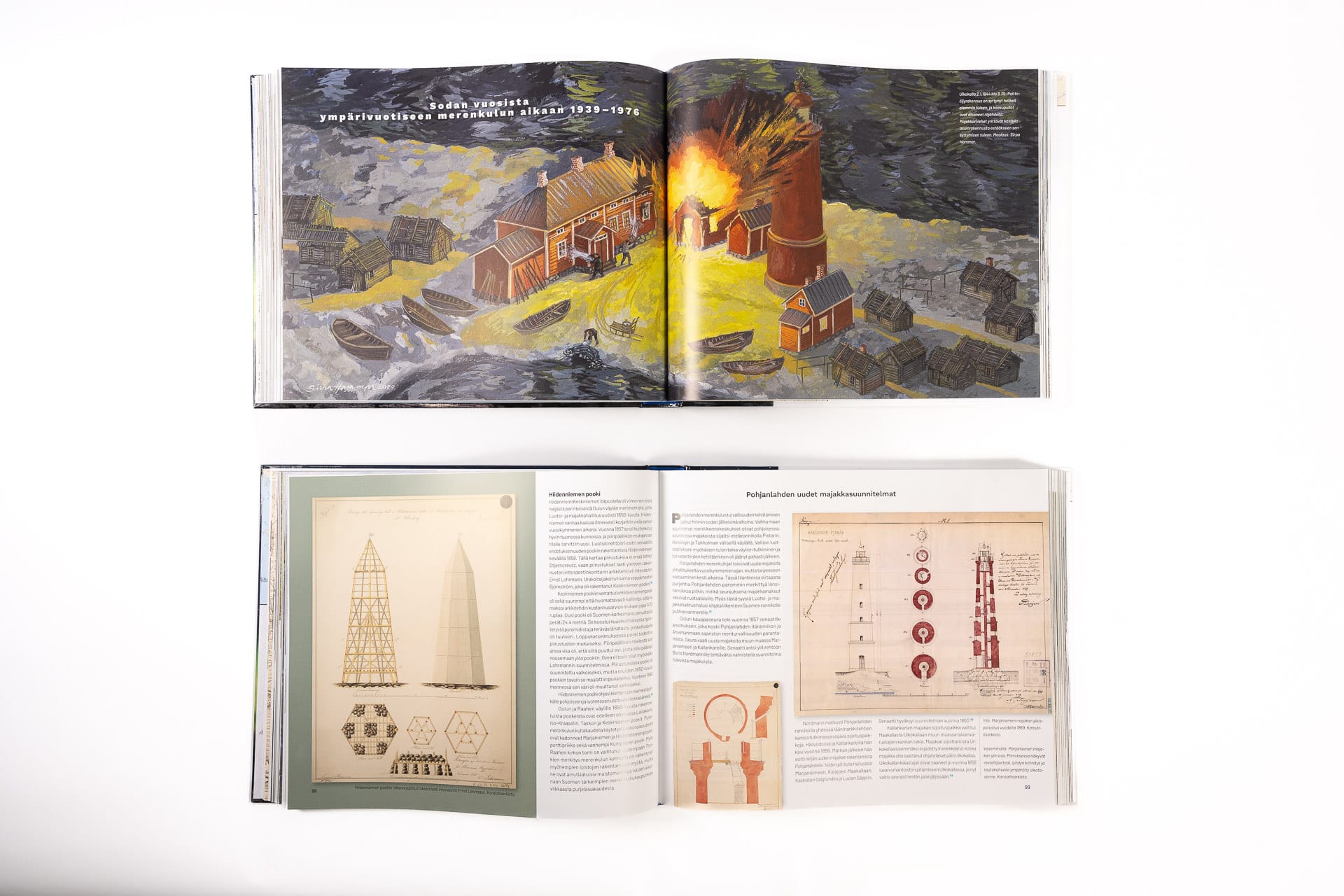 Kirjan runsas kuvituksessa on käytetty valokuvia, vanhoja merimerkkien piirustuksia ja historiallisia karttoja.